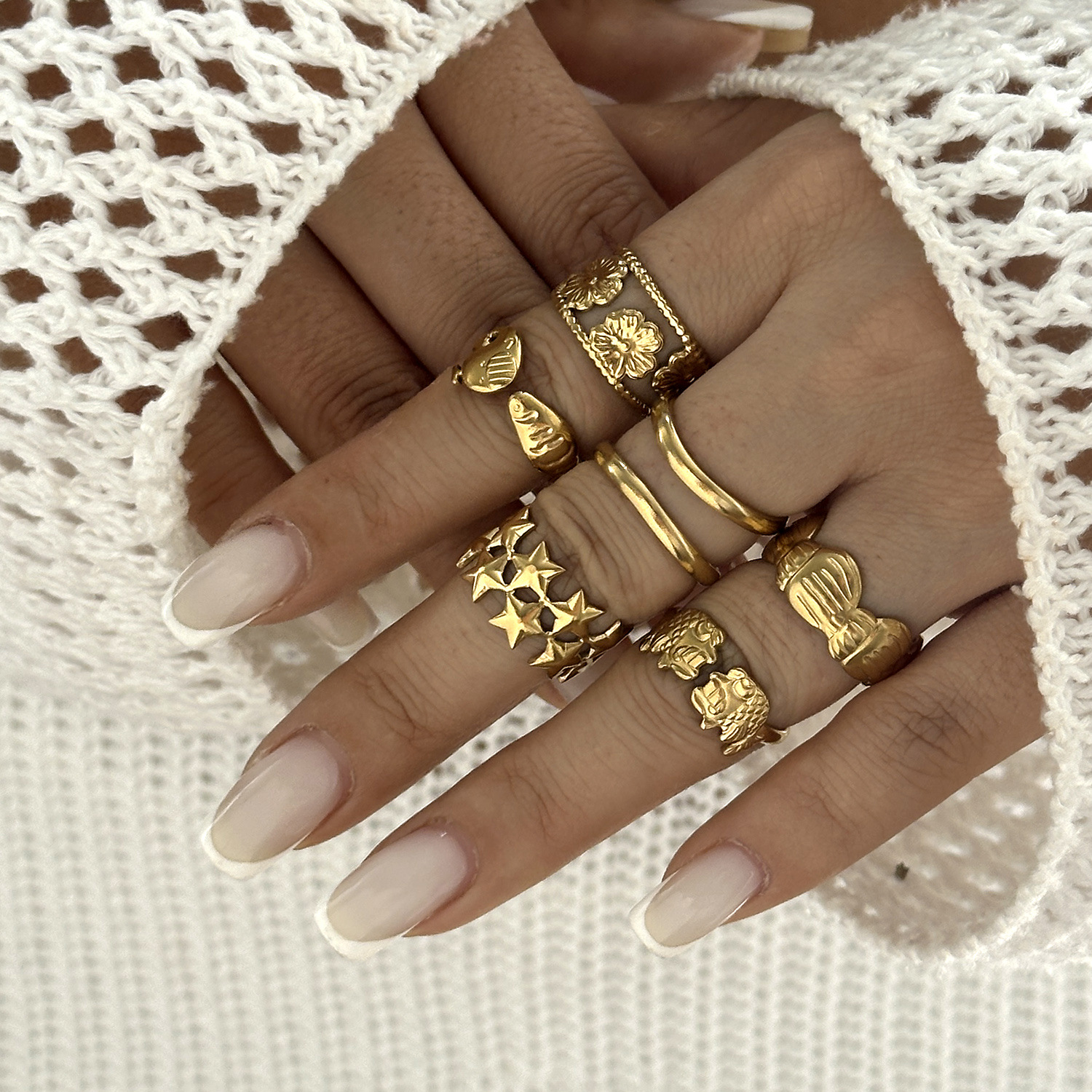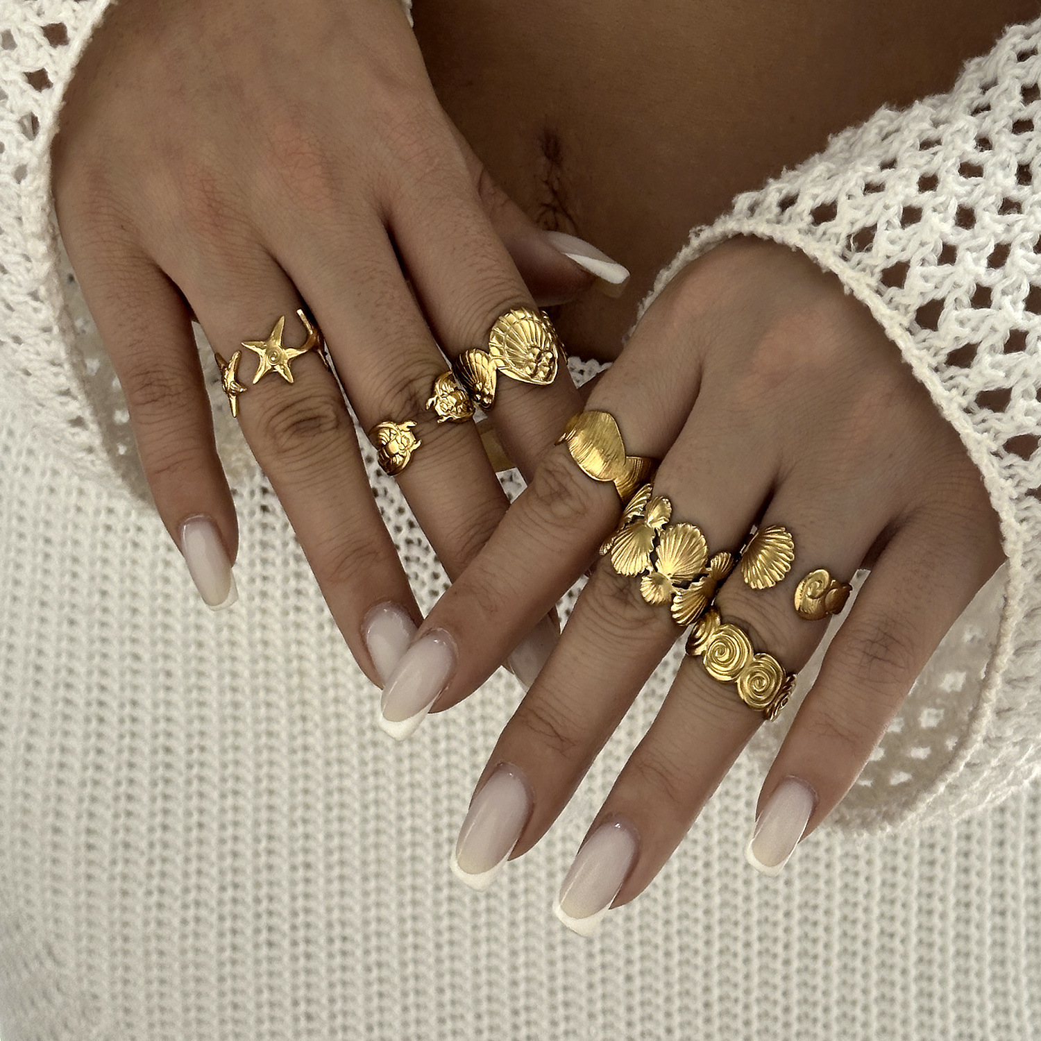 Color: five-pointed star, Ripple, vertical shell, conch, horizontal shell, circle, crab, whale, snail shell, clownfish, broken five-pointed star, flower, shaped interspersed, double circle