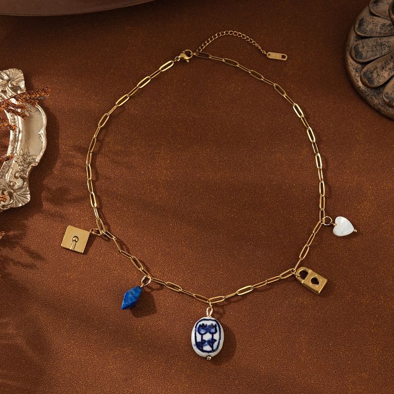 Color: Rose individual pendant, hat individual pendant, lock individual pendant, heart shell pendant, lapis lazuli pendant, clip chain
