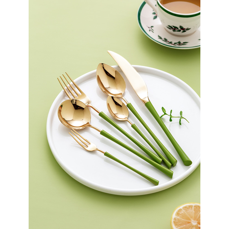 G: Aden light green gold knife, fork and spoon three-piece knife