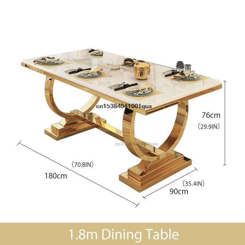 Light Luxury Kitchen Table With Marble Rectangle Stable Gold Plated Stainless Steel Frame Dining Table And Chairs Combination