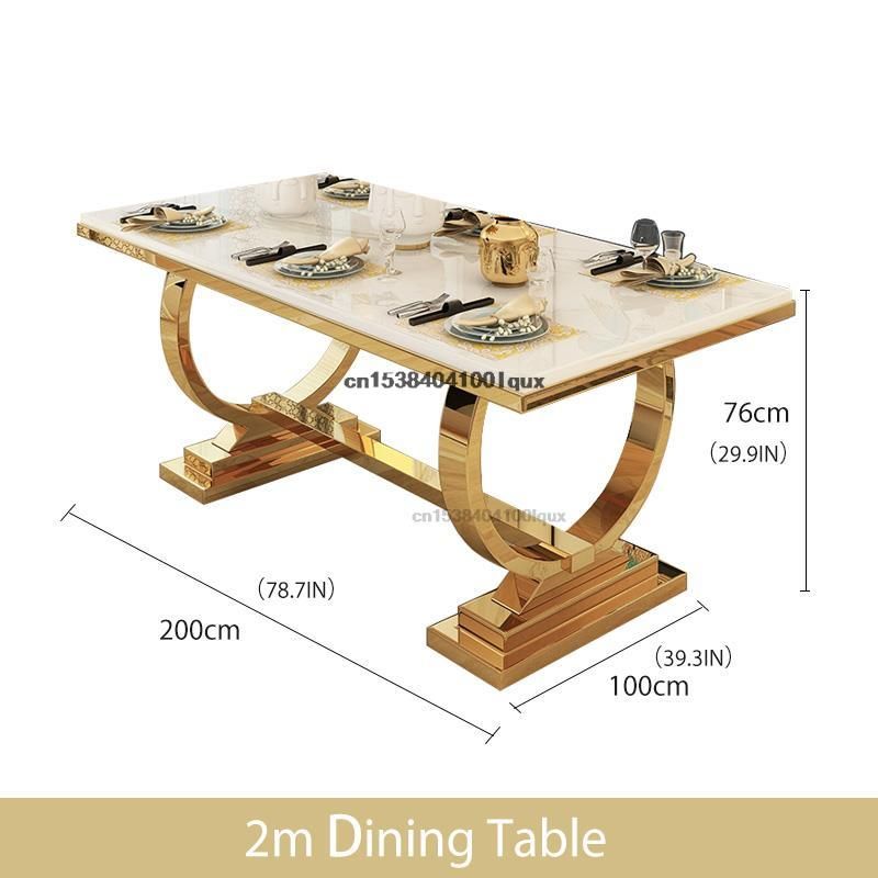 Light Luxury Kitchen Table With Marble Rectangle Stable Gold Plated Stainless Steel Frame Dining Table And Chairs Combination
