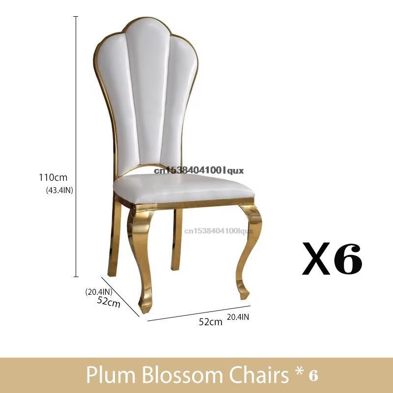 Light Luxury Kitchen Table With Marble Rectangle Stable Gold Plated Stainless Steel Frame Dining Table And Chairs Combination