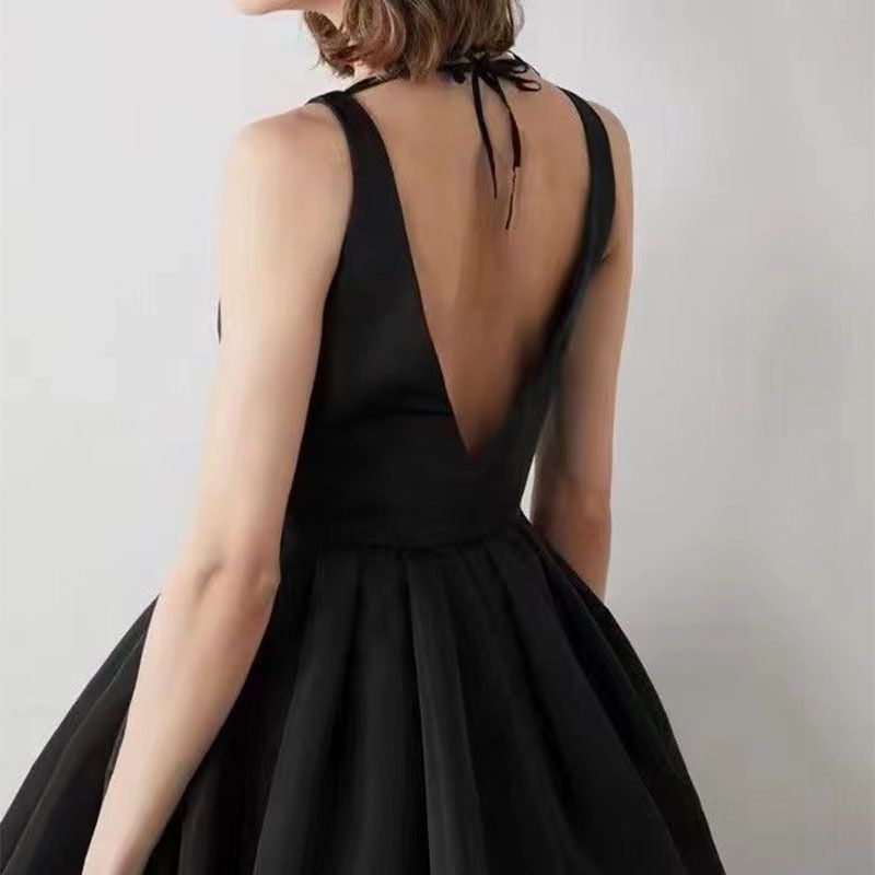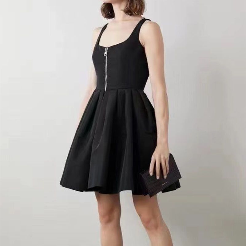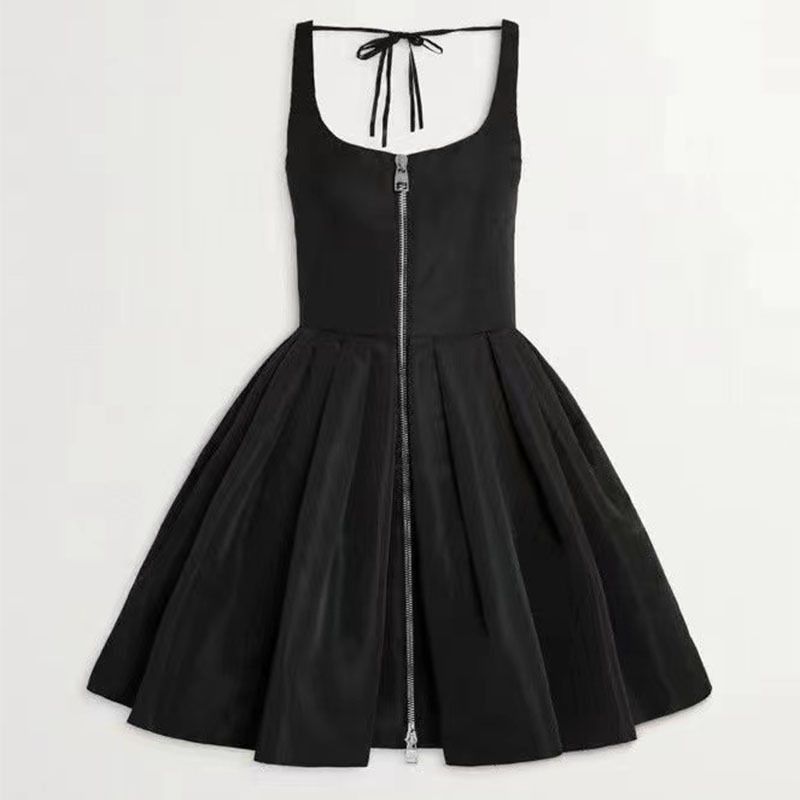 Light Luxury Niche Zipper Temperament Thin High Waist Dress Black M