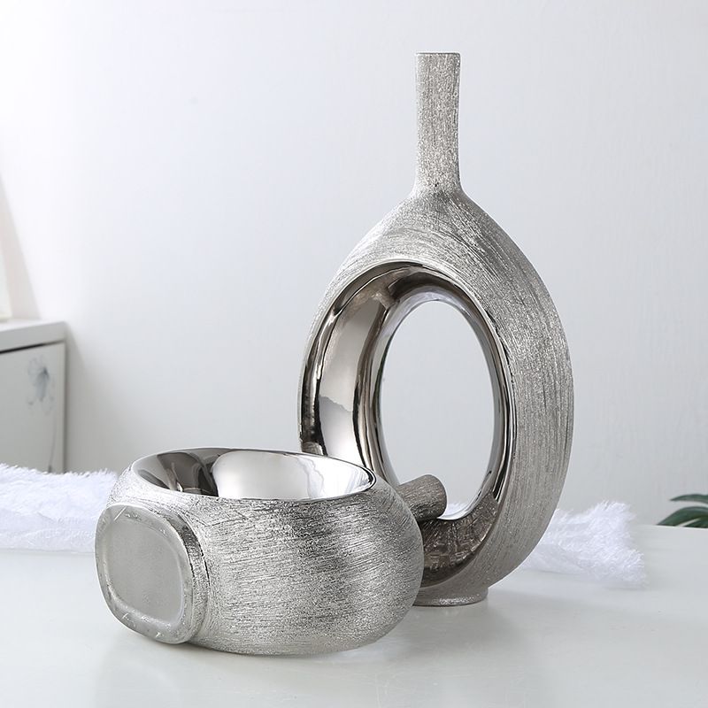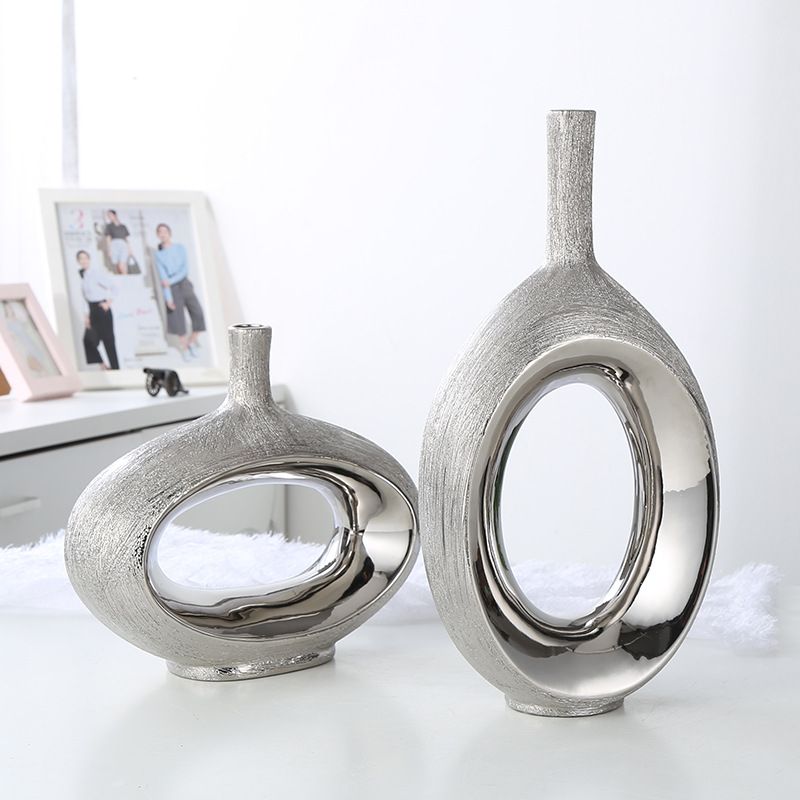 Light luxury Nordic electroplating brushed ceramic vase Gold M