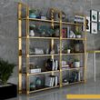 Light luxury stainless steel metal bookshelf shelf gold floor multi-layer display shelf wrought iron living room decorative bogu