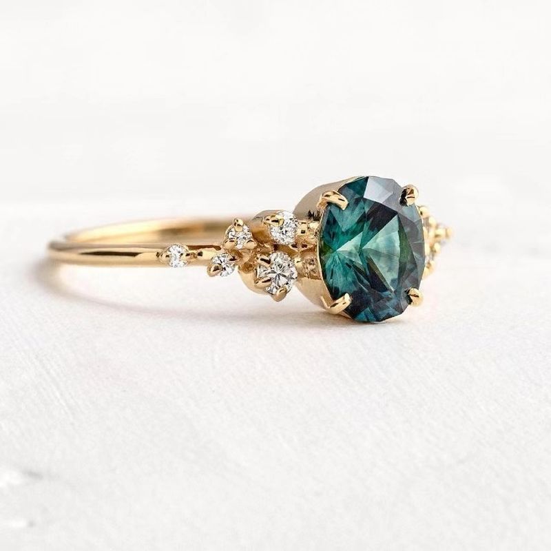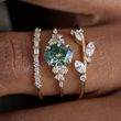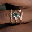 Light Luxury Temperament Flower Ring Three-piece Ring Set Green Diamond No 9
