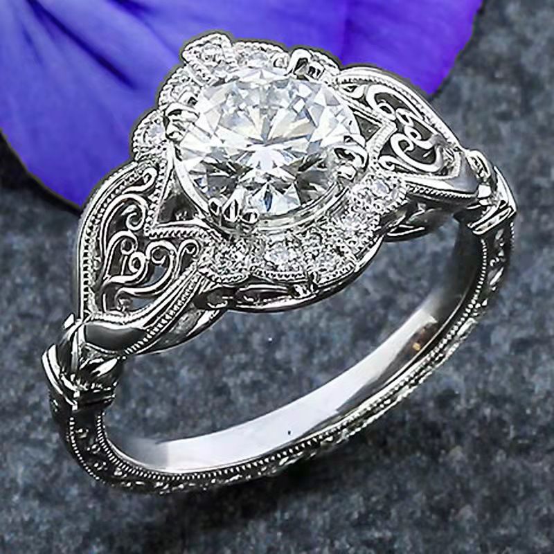 Light Luxury White Zircon Creative Texture Embossed Ring White Gold Color No 11
