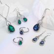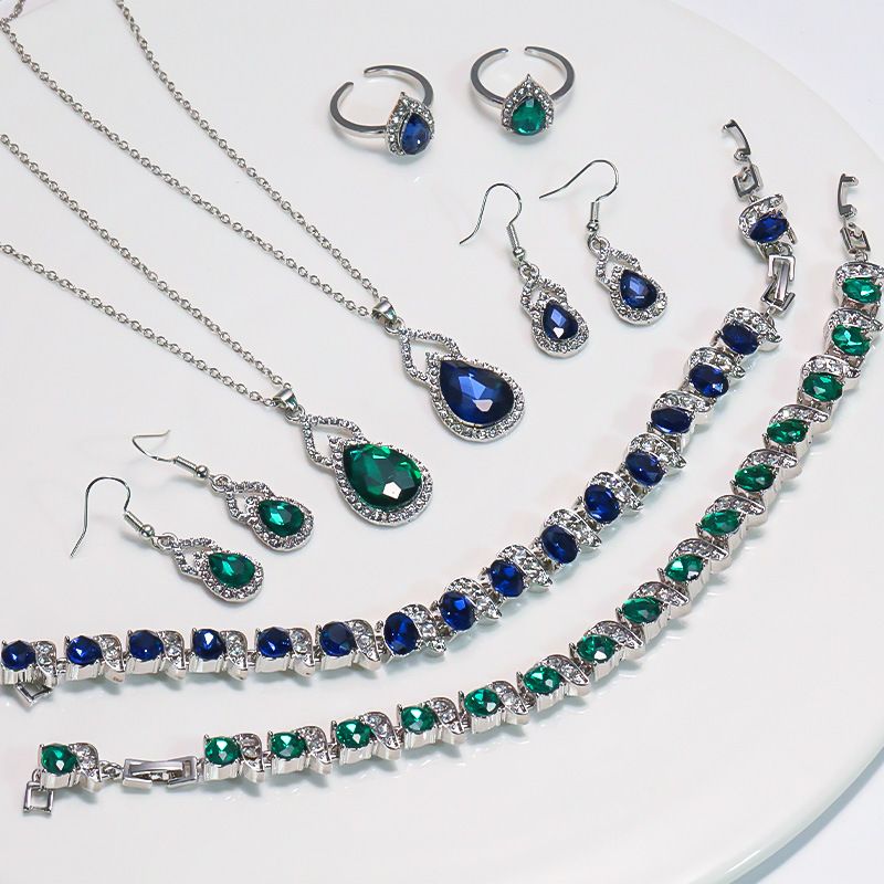Light Luxury Zircon Necklace Earrings Open Ring Jewelry Suit Blue