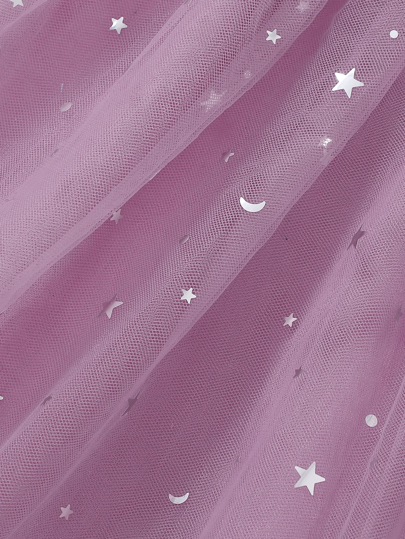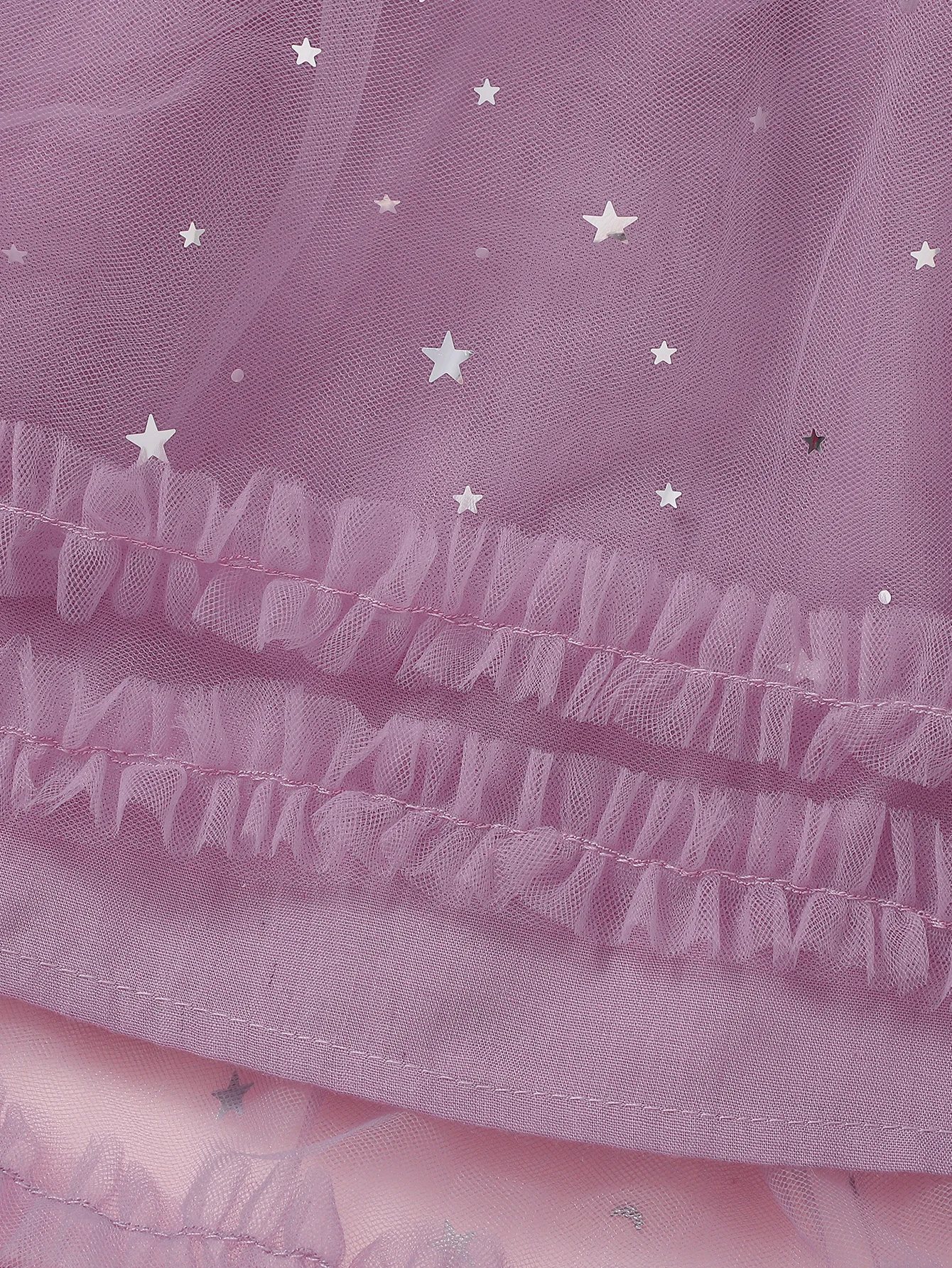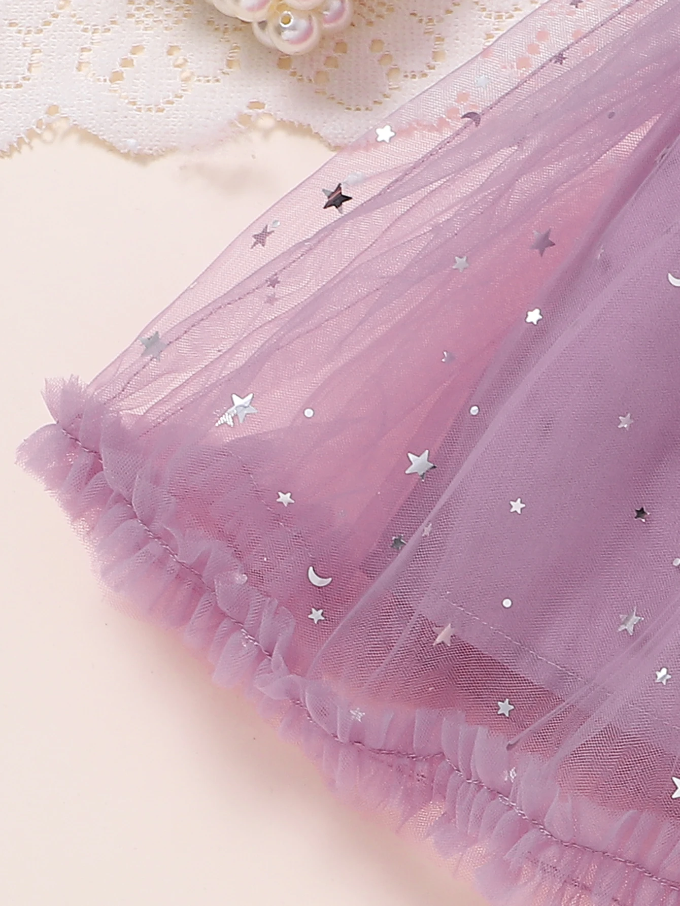 Light Purple Tulle Princess Skirt for Girls Summer Dreamy Starry Sky Star Print Puffy Strap Fairy Tale Outfit for Little Girls