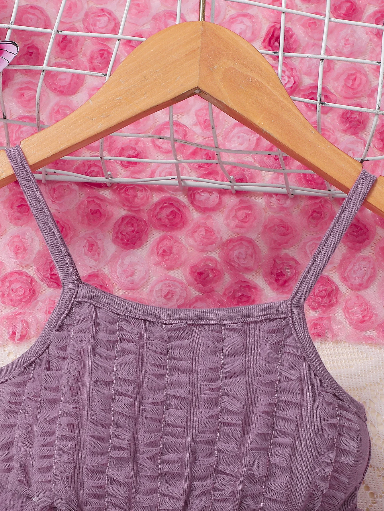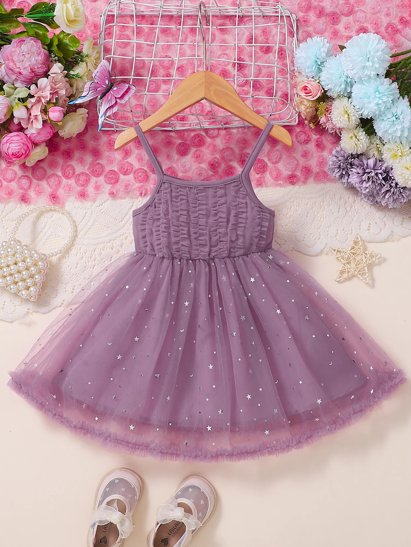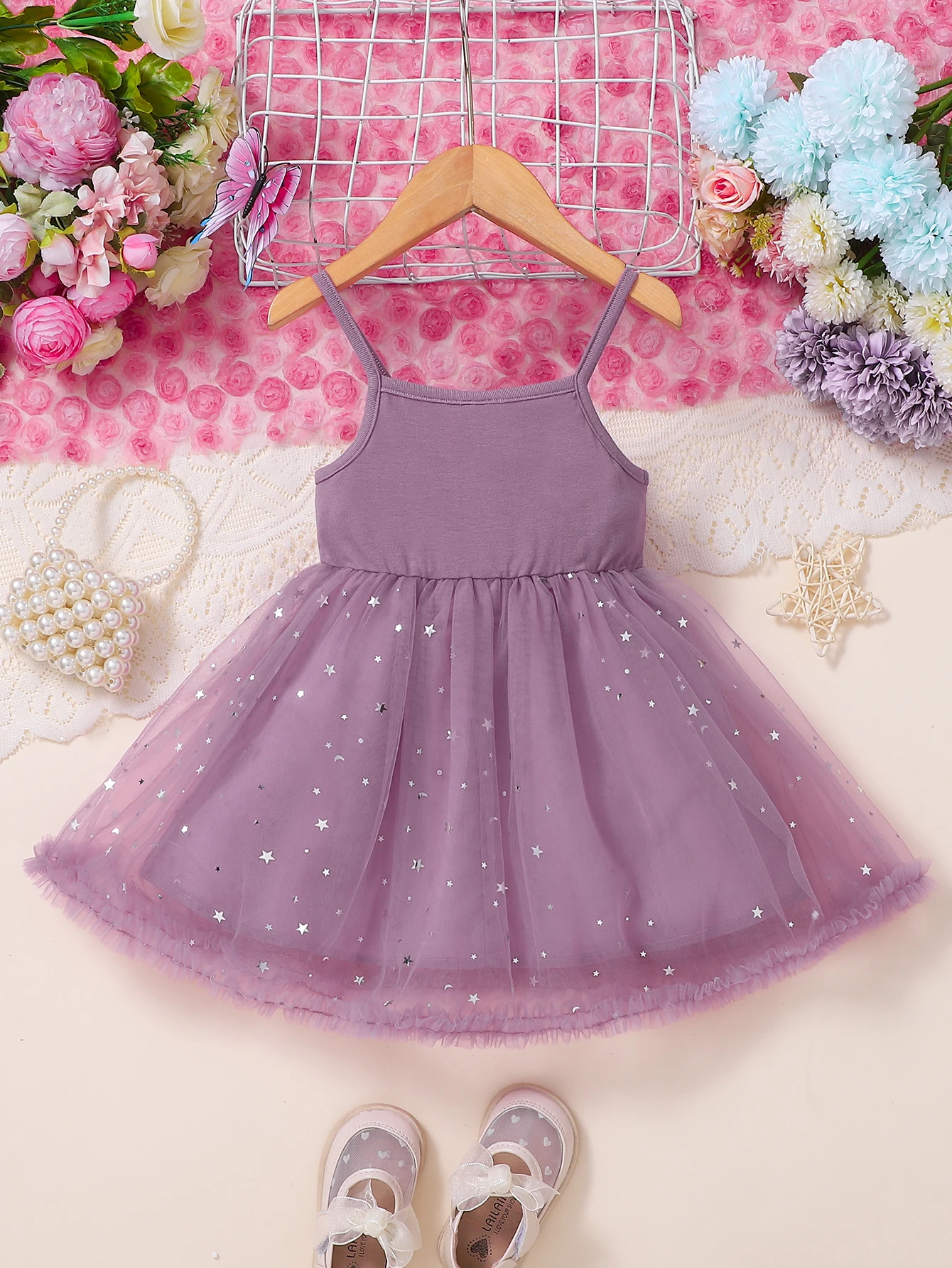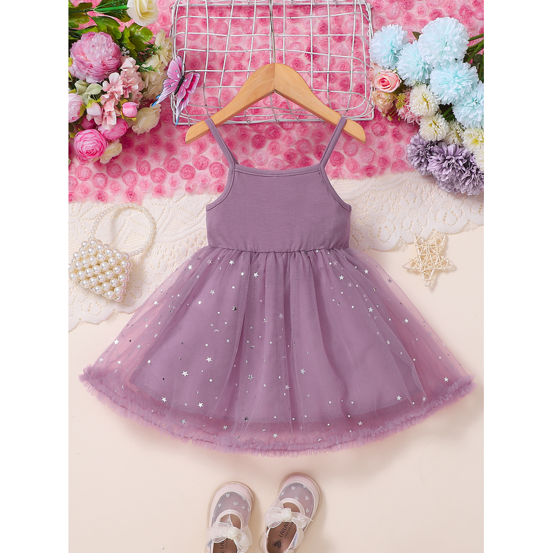 Light Purple Tulle Princess Skirt for Girls Summer Dreamy Starry Sky Star Print Puffy Strap Fairy Tale Outfit for Little Girls
