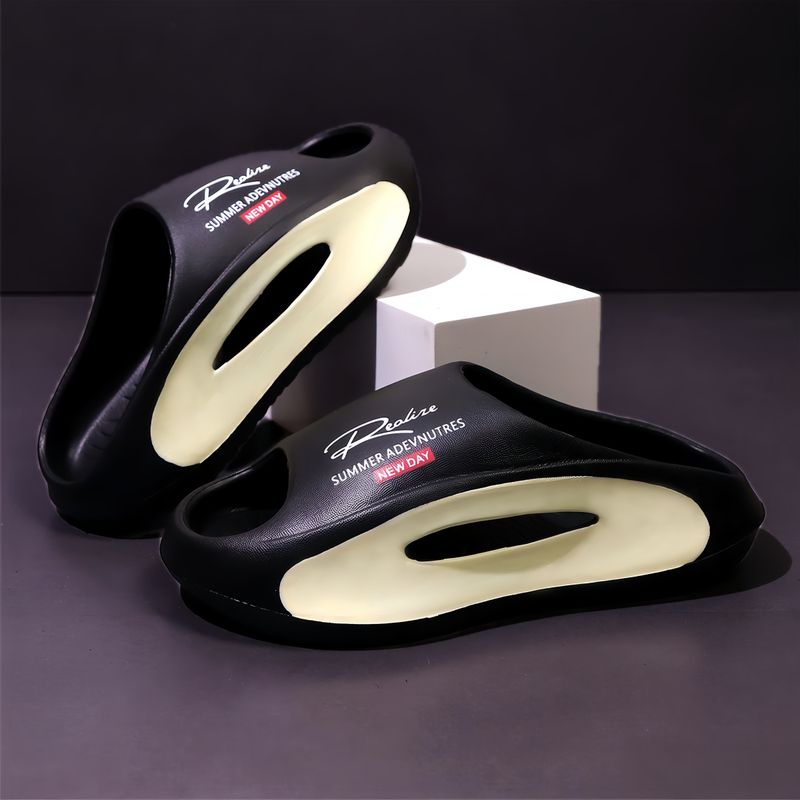 Lightweight EVA men's slide | Black and white cartoon design, exposed toes, comfortable all year round, casual indoor/outdoor us