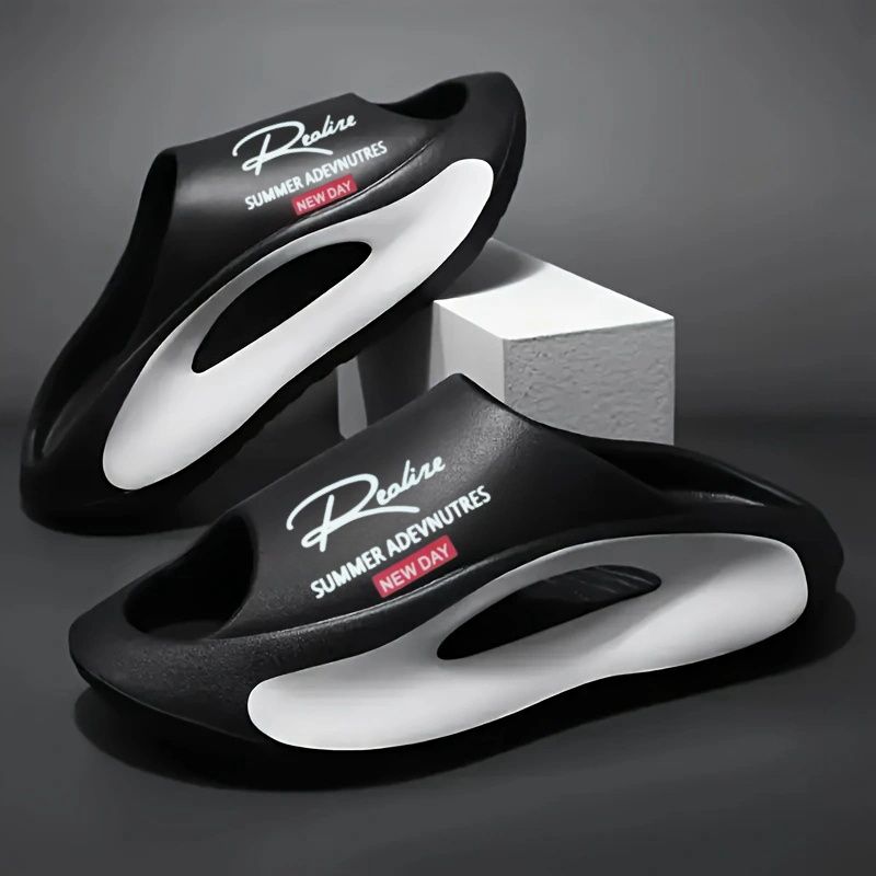 Lightweight EVA men's slide | Black and white cartoon design, exposed toes, comfortable all year round, casual indoor/outdoor us