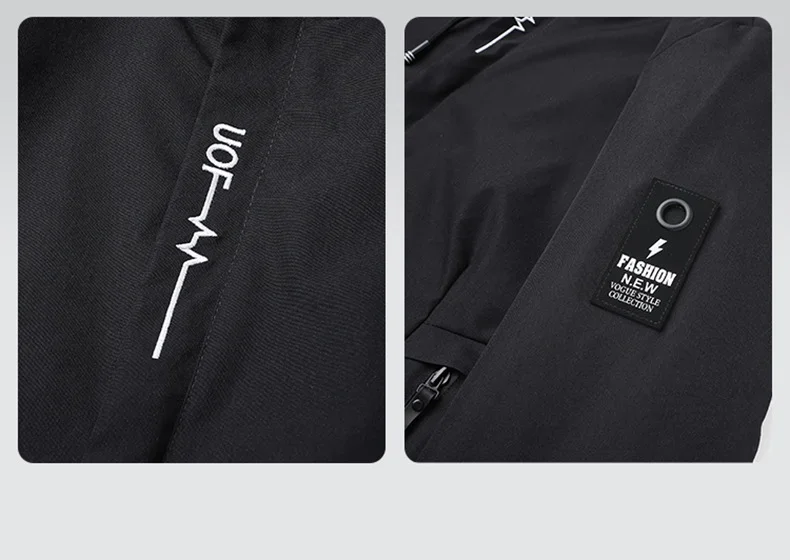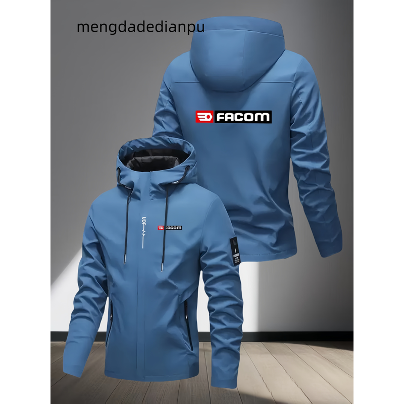 Lightweight Men's Hooded Jacket with FACOM Print - Full Zip Windproof Casual Coat for Daily Wear Commuting Outdoor Fashion