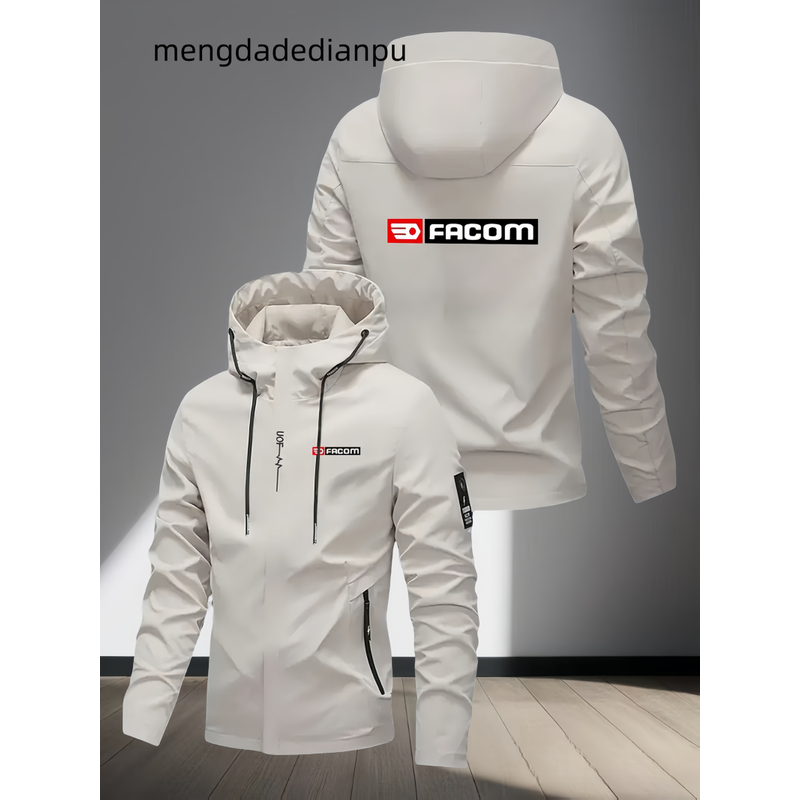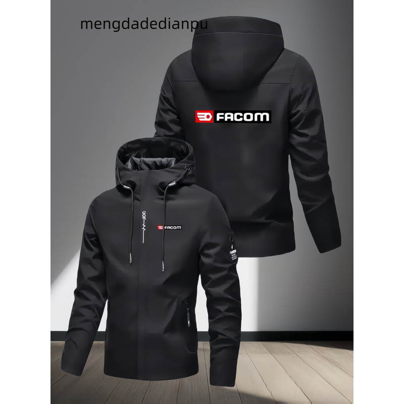Lightweight Men's Hooded Jacket with FACOM Print - Full Zip Windproof Casual Coat for Daily Wear Commuting Outdoor Fashion