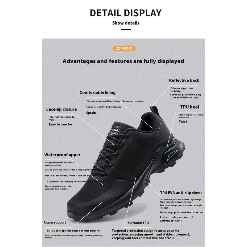 Lightweight Outdoor Shoes Hiking Shoes Breathable And Comfortable Khaki Black 46
