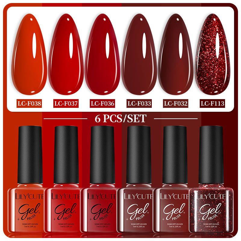 LILYCUTE 7ml 6Pcs Gel Nail Polish ANCOLA Red Glitter Winter Semi Permanent Soak Off UV LED Varnish Design Manicure Gel Kits