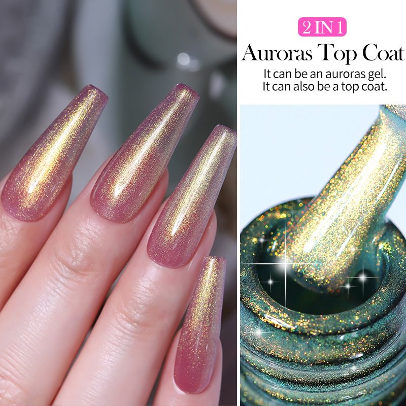 Step 6: Apply No Wipe Top Coat and cure under nail lamp again.     Or regular Top Coat but remove the tacky surface with cotton soaked with cleanser or 95°alcohol after curing.