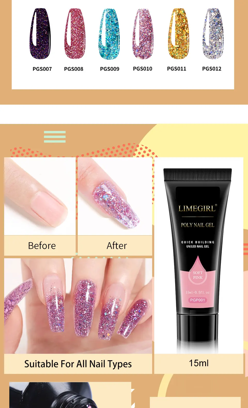Poly UV Gel Kit All for Nail Art Gel Nail Extension Kit Slip Solution Generator Acrylic Gel Polish Nail Art Tools Design Fingertips15ml Poly Nail Gel Complete Set for Extension Nails Glitter Solid Gel Polish Kit Set Acrylic Nails Beginner Manicure Tool KitBrand new and high quality