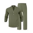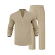Linen Autumn New Men's Suit Beach Style Loose Casual Breathable V-Long Sleeve Henley Shirt with Straight-Leg Pants 2 Set