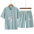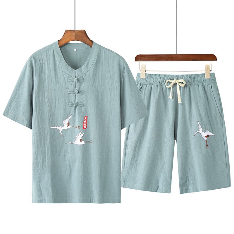Linen Short-Sleeved T-Shirt Casual Suit Blue L