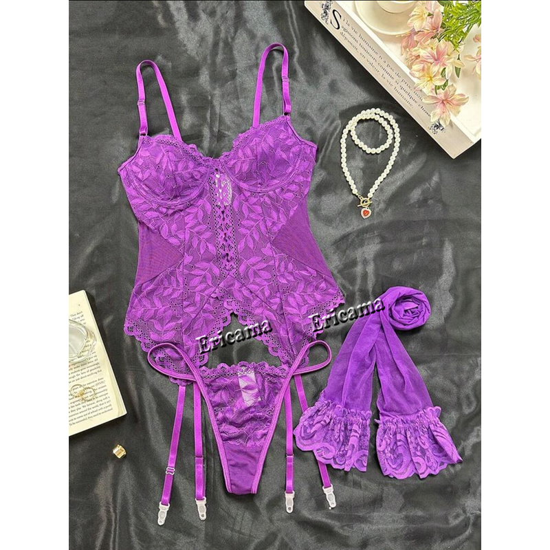 Lingerie Fancy Sexy Lace Underwear 3-Piece Transparent Spliced Bra And Panty Set Garter Intimate Sexy Women's Underwear Lingerie