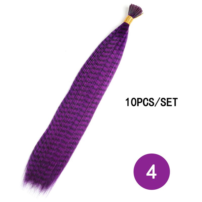 LISI GIRL Synthetic Colored Feather Hair Extensions 16Inch 10 Pieces/Pack Blue Purple For Women Zebra Line Feather Hairpiece