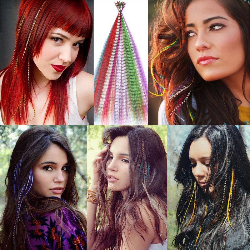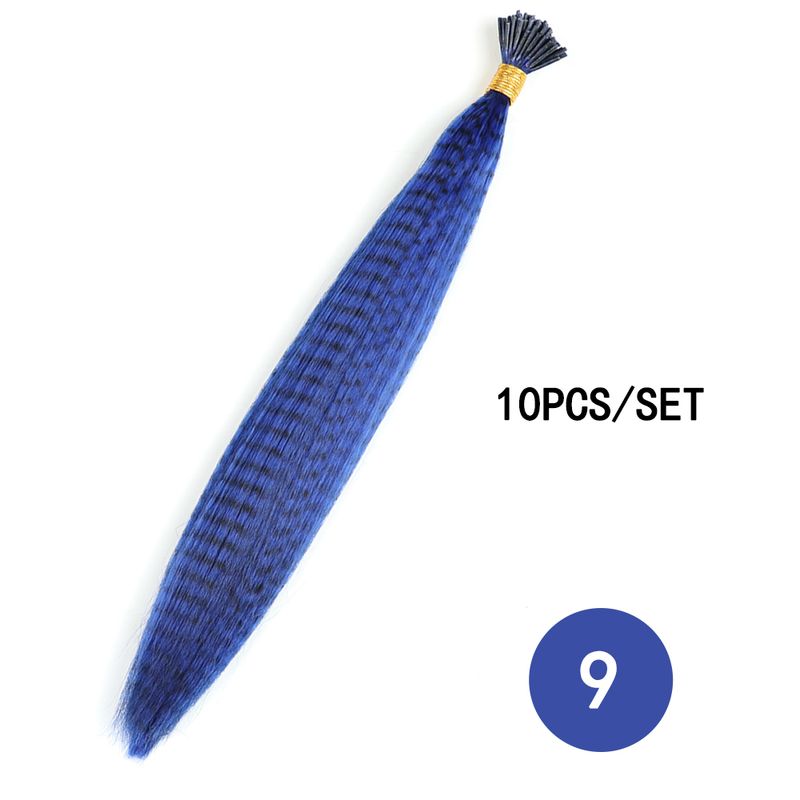 LISI GIRL Synthetic Colored Feather Hair Extensions 16Inch 10 Pieces/Pack Blue Purple For Women Zebra Line Feather Hairpiece