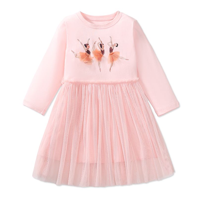 Little maven Kids Clothes Children's Clothing 2026 Autumn Cotton Baby Girls Cartoon Ballet Dancer Long Sleeves Dresses 2-7 year