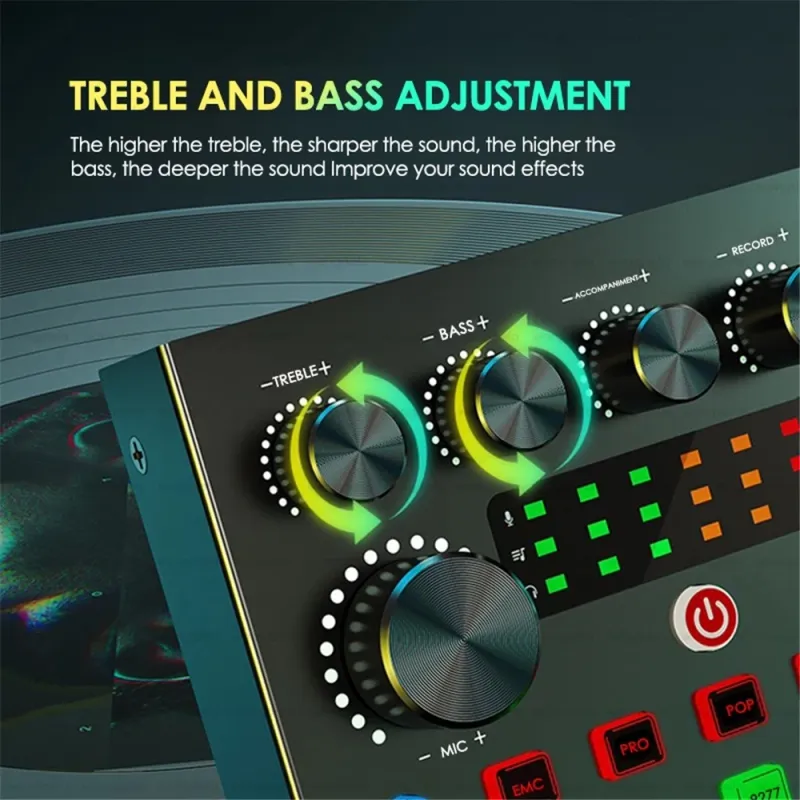 ★The sound card has sound effects, fun modes and adjustment knobs.