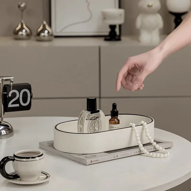 Living Room Decoration PU Leather Storage Box Home Entrance Jewelry Organizer Box Desktop Cosmetics Miscellaneous Tray Home