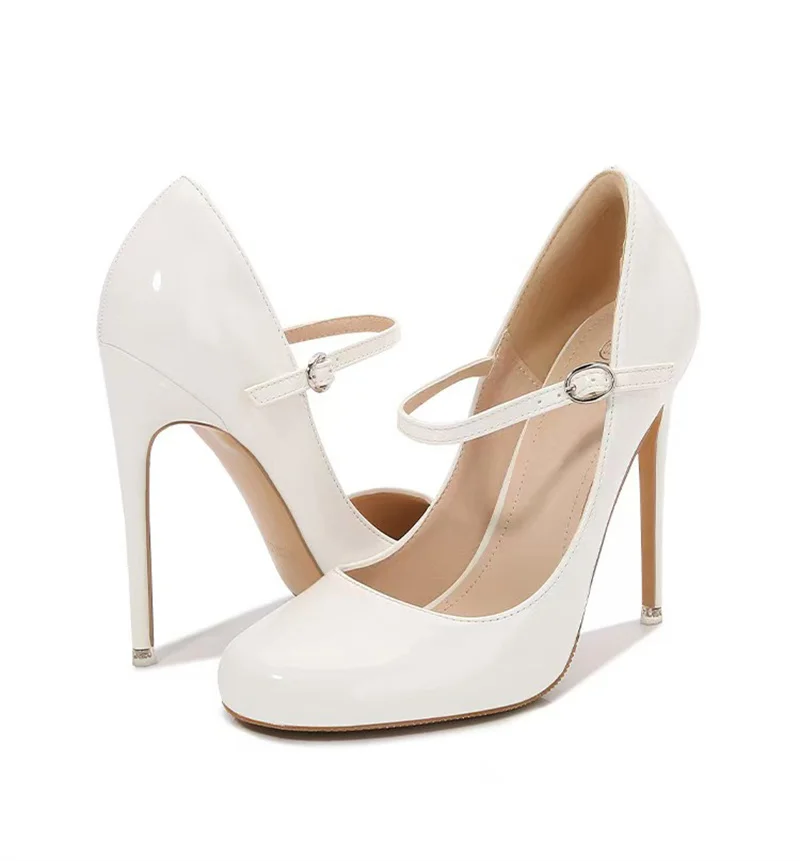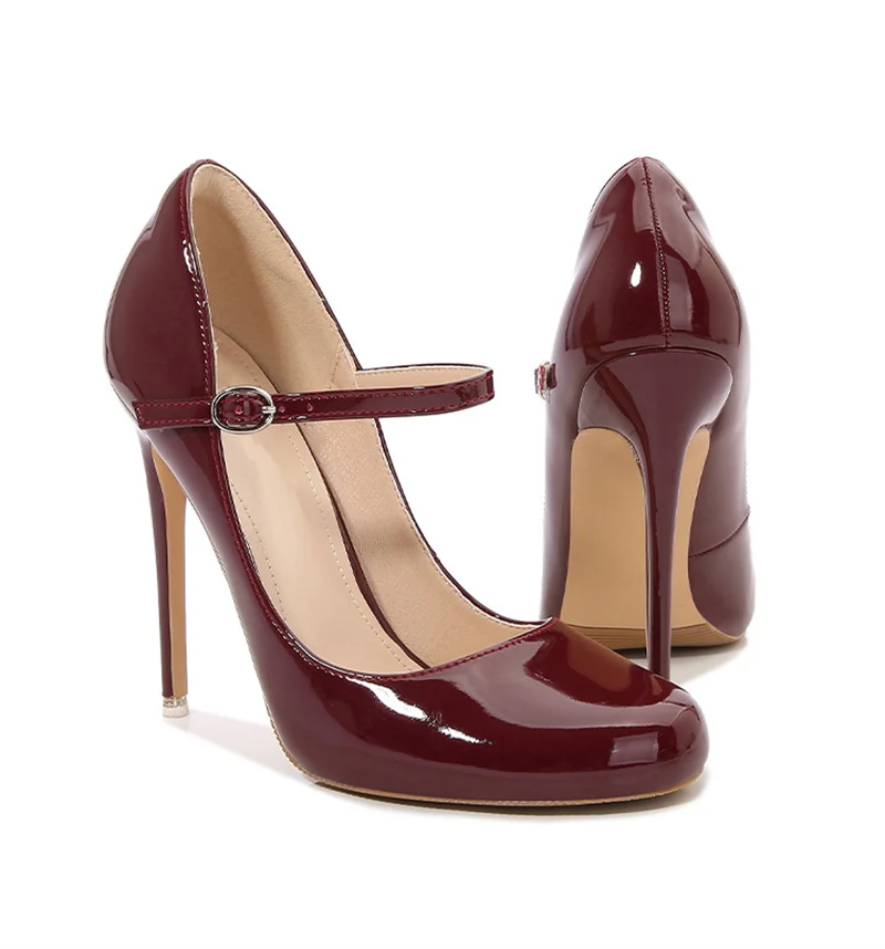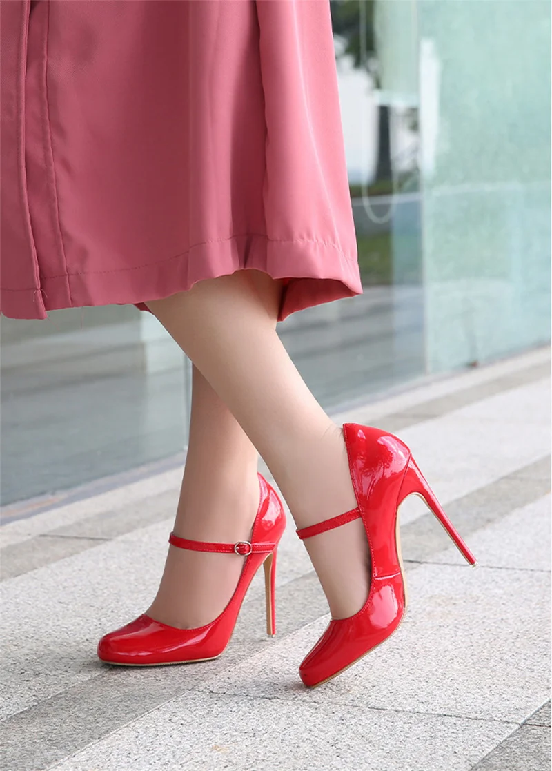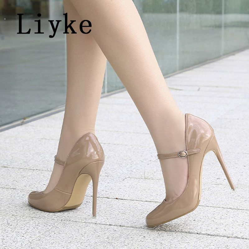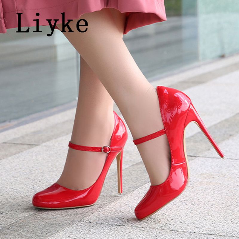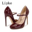 Liyke Big Size 44 45 46 Patent Leather Stiletto High Heels For Ladies Party Prom Shoe Fashion Round Toe Buckle Strap Women Pumps
