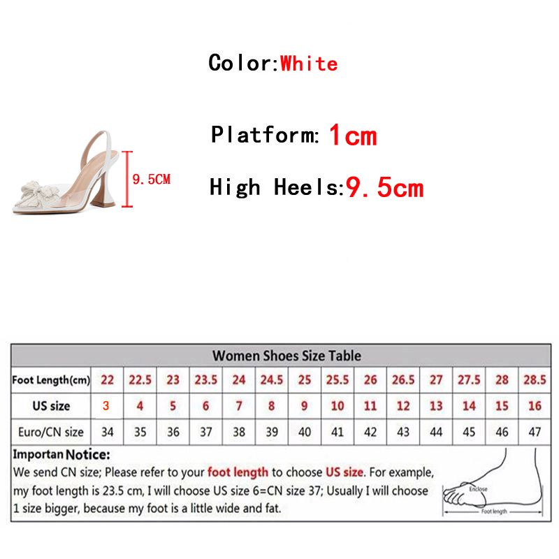 Liyke Fashion Design White Pearl Bowknot Women Pumps Sexy Pointed Toe High Heels Wedding Prom Shoe PVC Transparent Sandal Female
