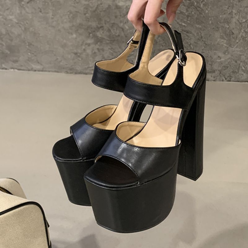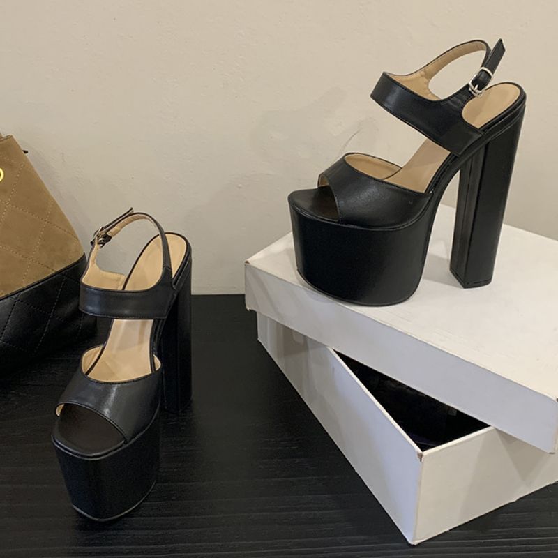 Liyke Runway Fashion Buckle Strap Women Sexy 18CM Sandals Black Chunky Platform High Heels Party Club Stripper Pole Dance Shoes