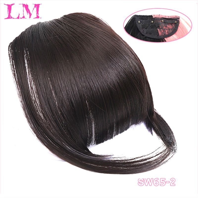 LM Natural Straight Synthetic Blunt Bangs High Temperature Fiber Brown Women Clip-In Full Bangs With Fringe Of Hair 6 Inch