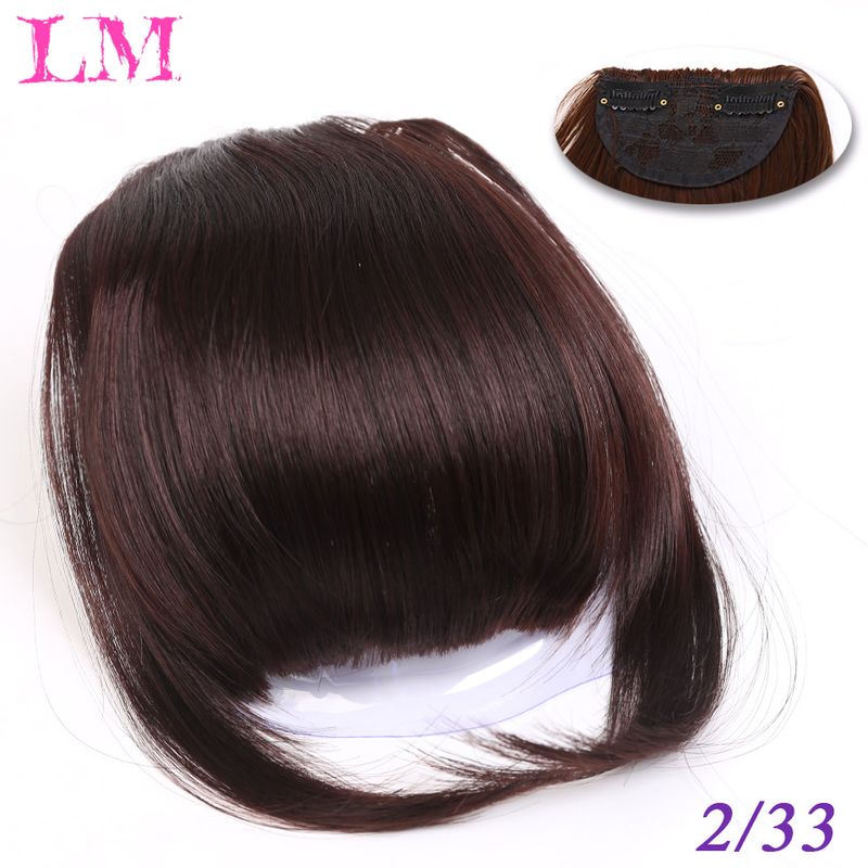 LM Natural Straight Synthetic Blunt Bangs High Temperature Fiber Brown Women Clip-In Full Bangs With Fringe Of Hair 6 Inch