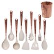LMETJMA Silicone Kitchen Utensil Set 10 Pcs Cooking Utensil with Utensils Holder Wooden Pattern Handles Nonstick Cookware JT264