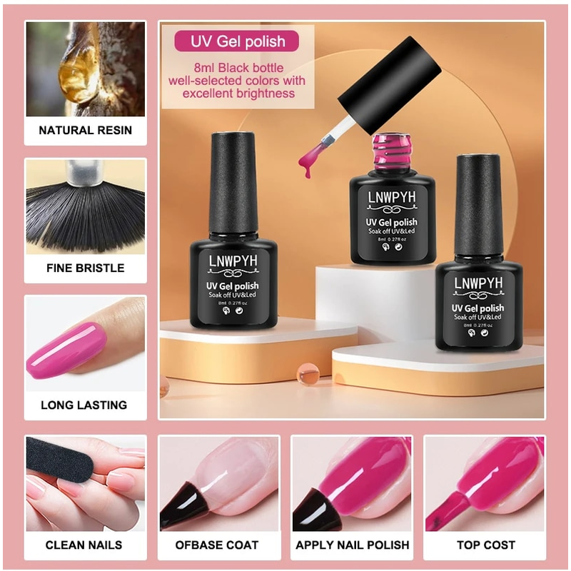 Step 4. Apply first layer of color gel nail polish directly, cure with UV lamp for 2 minutes or cure with LED lamp for 60 seconds.