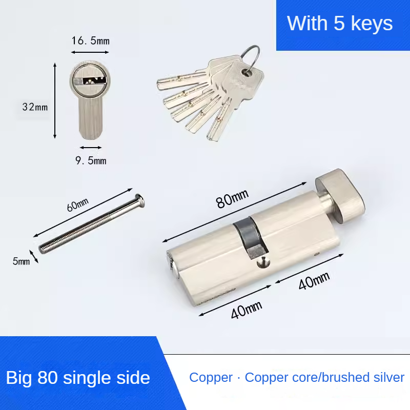 Lock Cylinder Security Lock Core Door Cylinder Interior Bedroom Living Handle Brass Lock 5 Keys 55 60 65 70 75 80 85 90-120mm