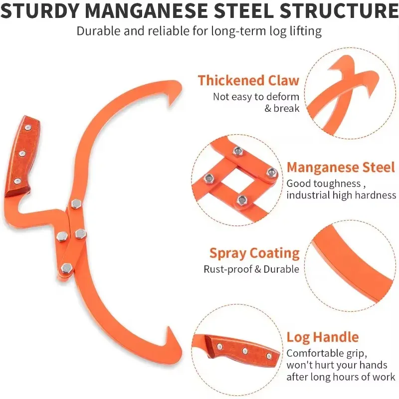 Log Tongs Logging Skidding Tongs Non-Slip Grip for Log Lifting Handling Dragging Carrying Woodworking Tools