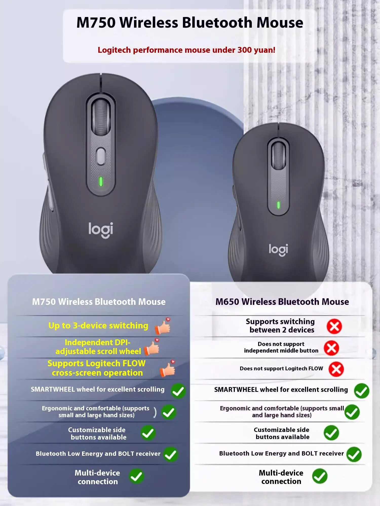 Logitech MX Anywhere 3S/ Pop /M350Wireless Mouse, Supports Bluetooth and 2.4GHz USB Dual-mode Connection, Suitable for PC Lapto