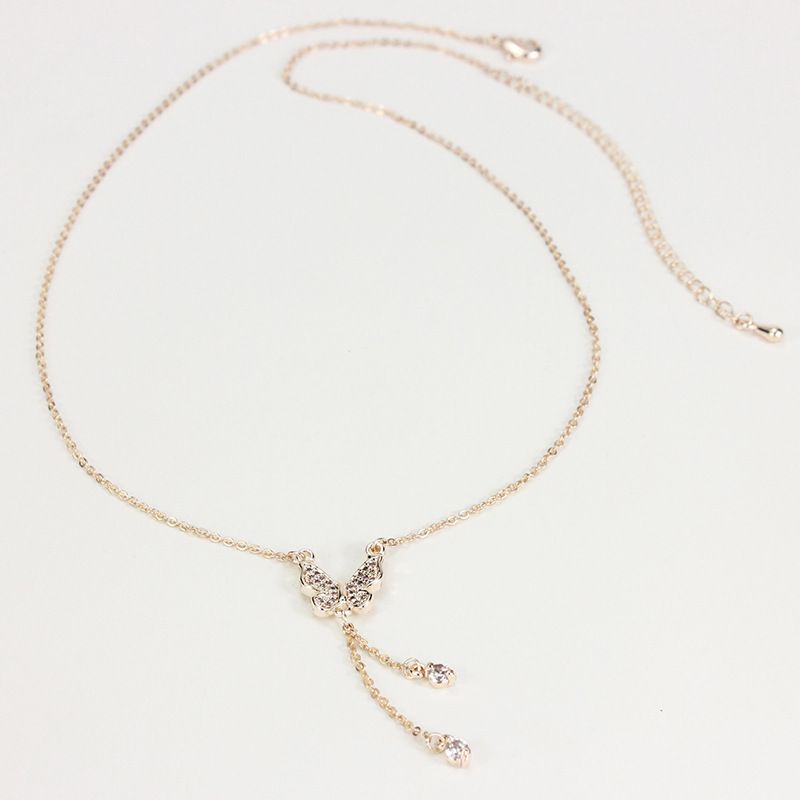 Long Four-leaf Clover Necklace Women Light Luxury Simple Golden butterfly