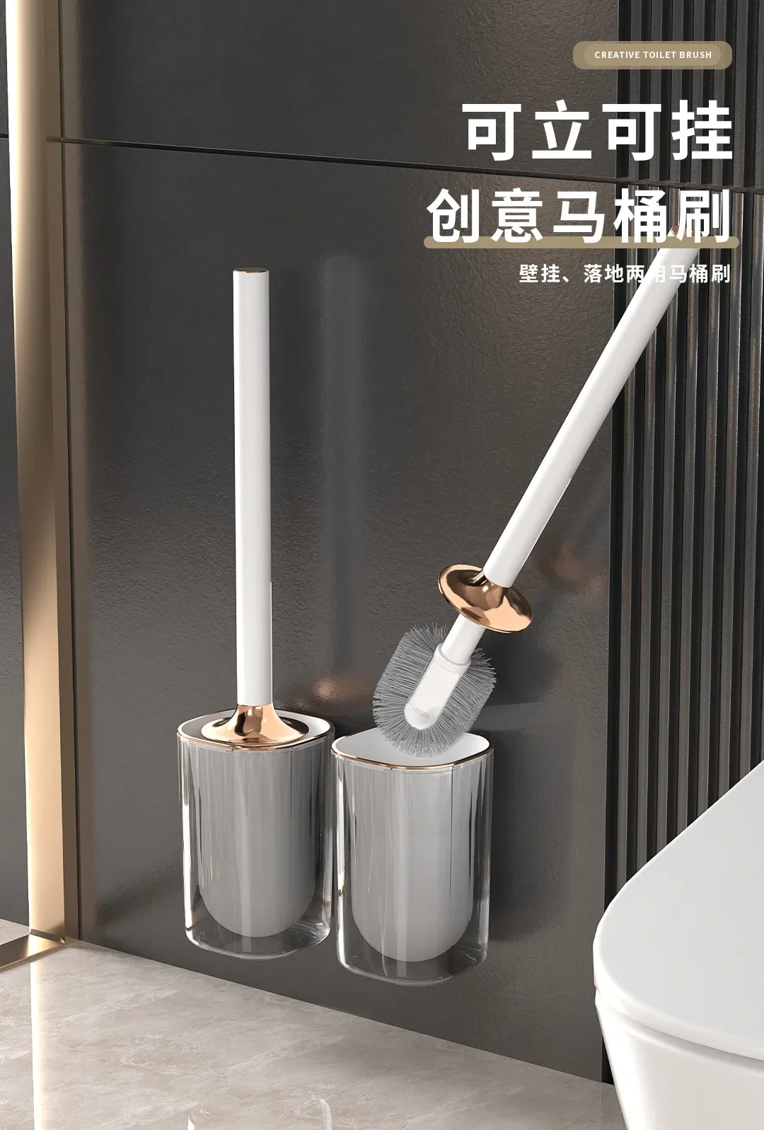 Long Handle Toilet Brush Without Dead Angle Household Wall Washing Toilet Cleaning Brush Set Draining Anti-mold Home Cleaning