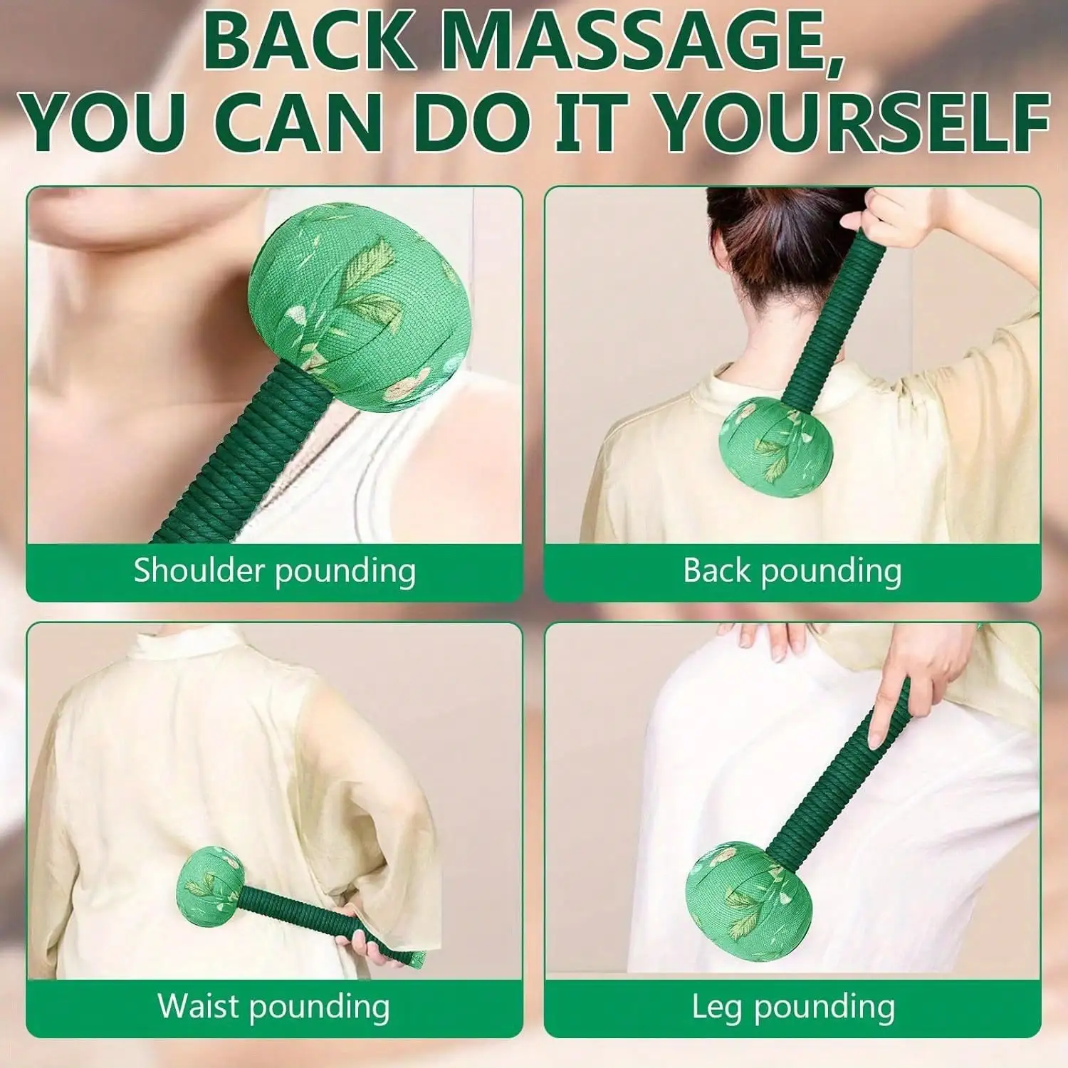 Long-Handled Wormwood Massage Hammer for Lymphatic Drainage - Manual Full Body & Back Relief, Stress Reduction, Nylon Material