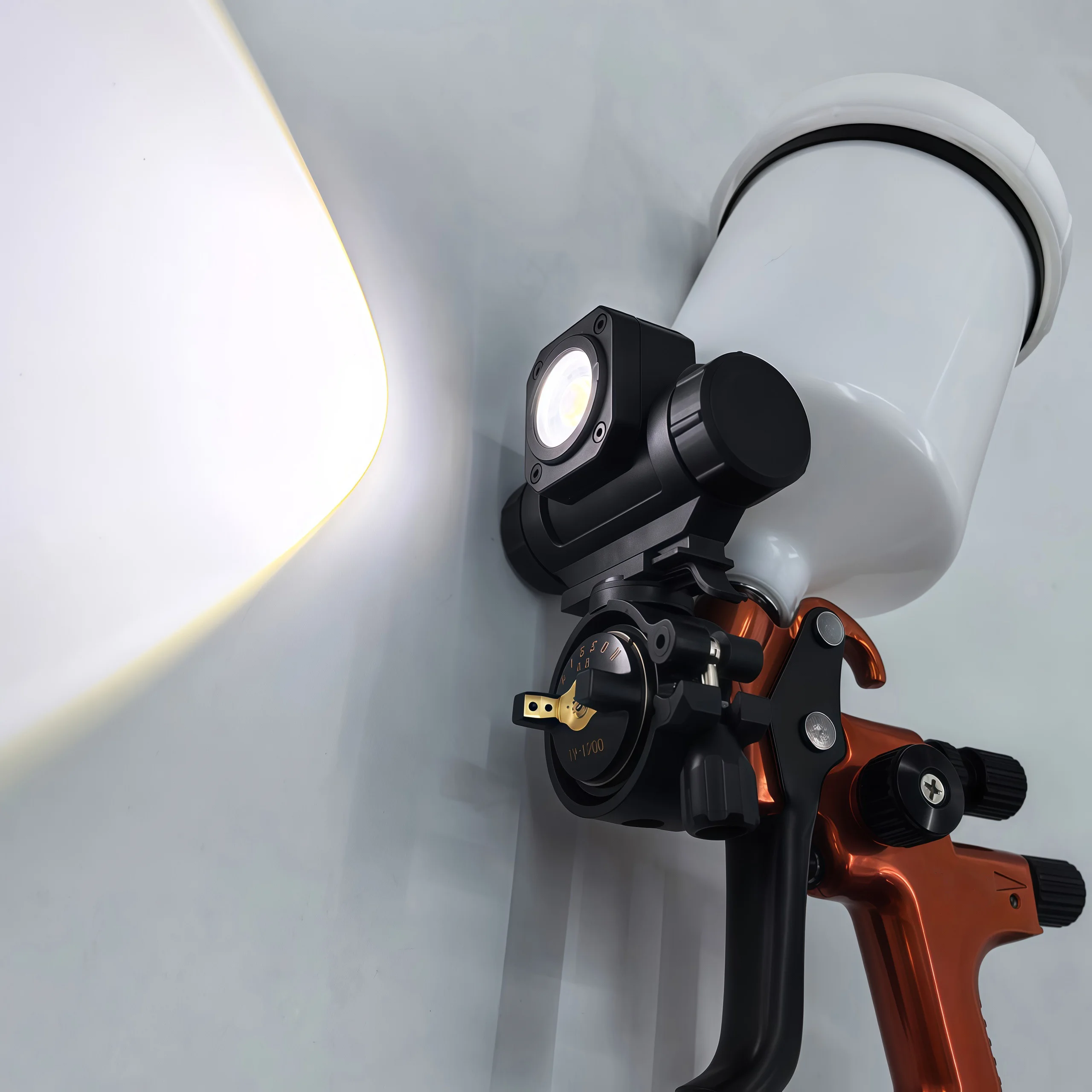 Long-Lasting 4.5–7H Rechargeable Spray Gun Light – Fits 2.8–4.2cm Nozzles, 3 Colors, 250–450LM, with Zippered Storage Bag, IPX4 Waterproof for Auto Painting