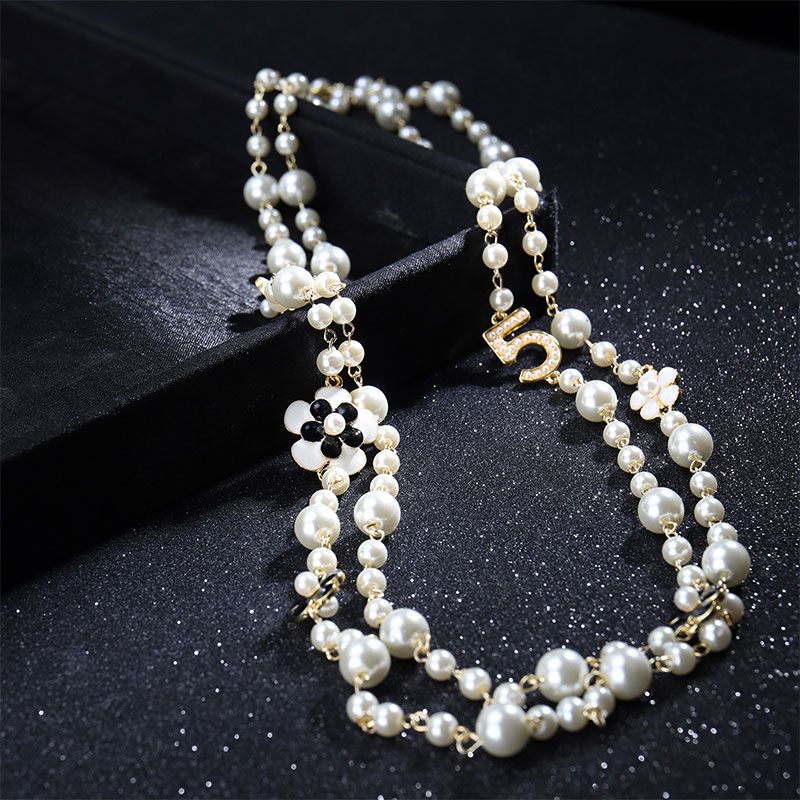 long pendants layered Camellia pearl necklace collares de moda flower party jewelry