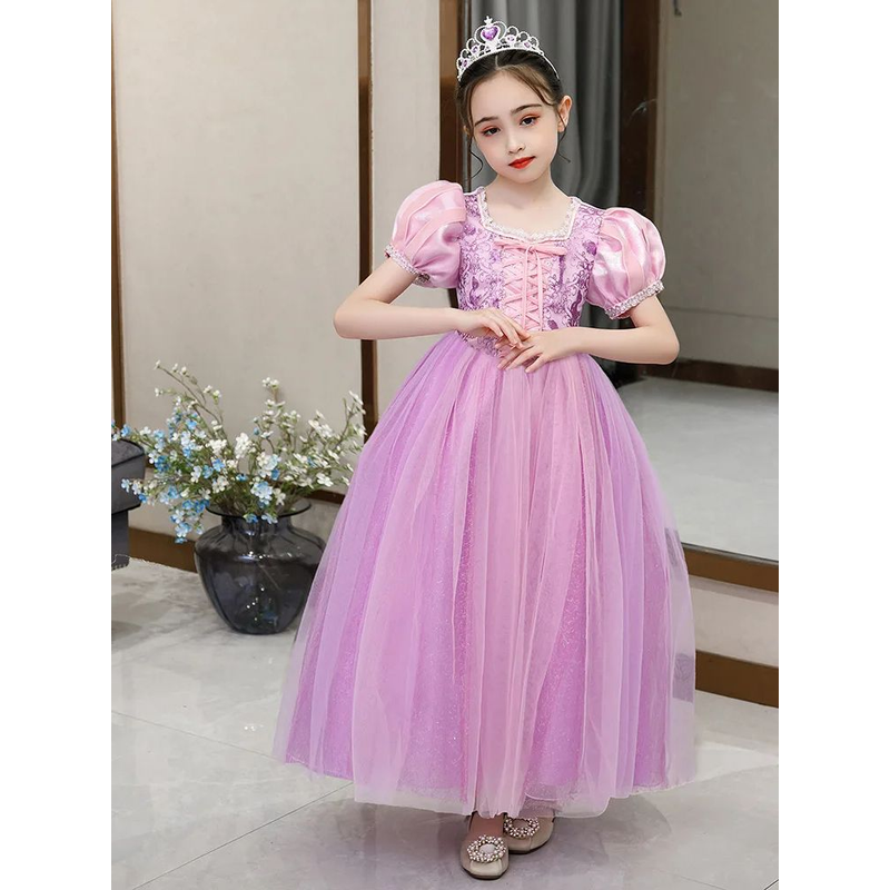 Long Pink dDress for Girls Birthday Party Sophia Cosplay Velvet Winter Purple Frozen Princess Rapunzel Dress For 3-10 Years Old