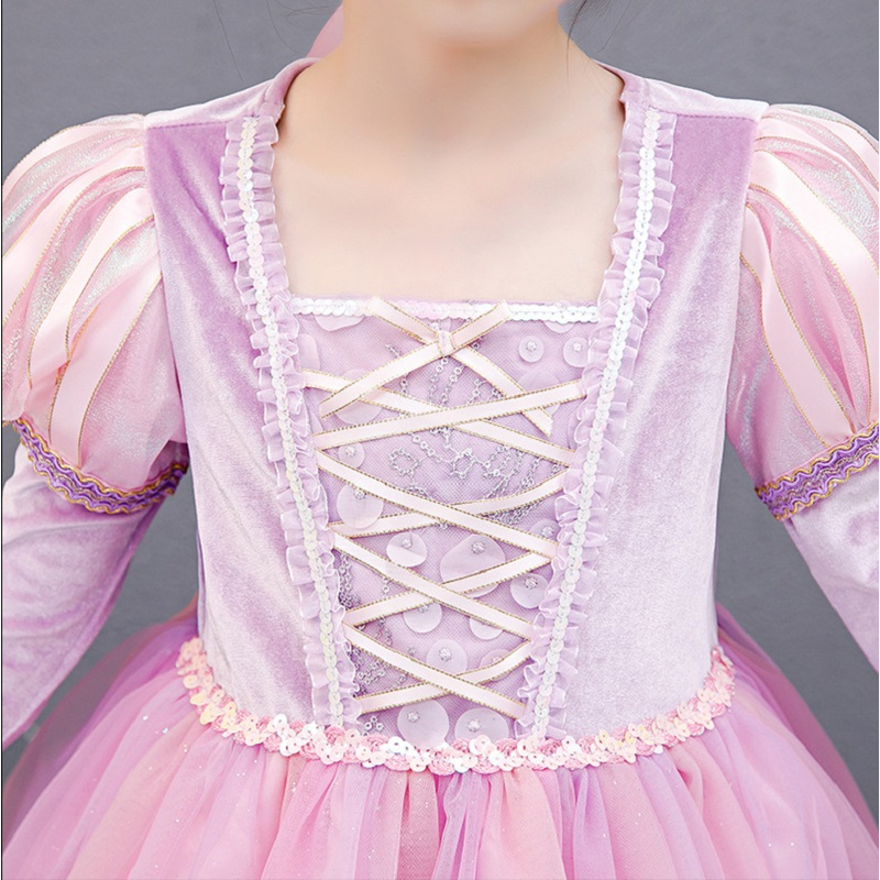 Long Pink dDress for Girls Birthday Party Sophia Cosplay Velvet Winter Purple Frozen Princess Rapunzel Dress For 3-10 Years Old