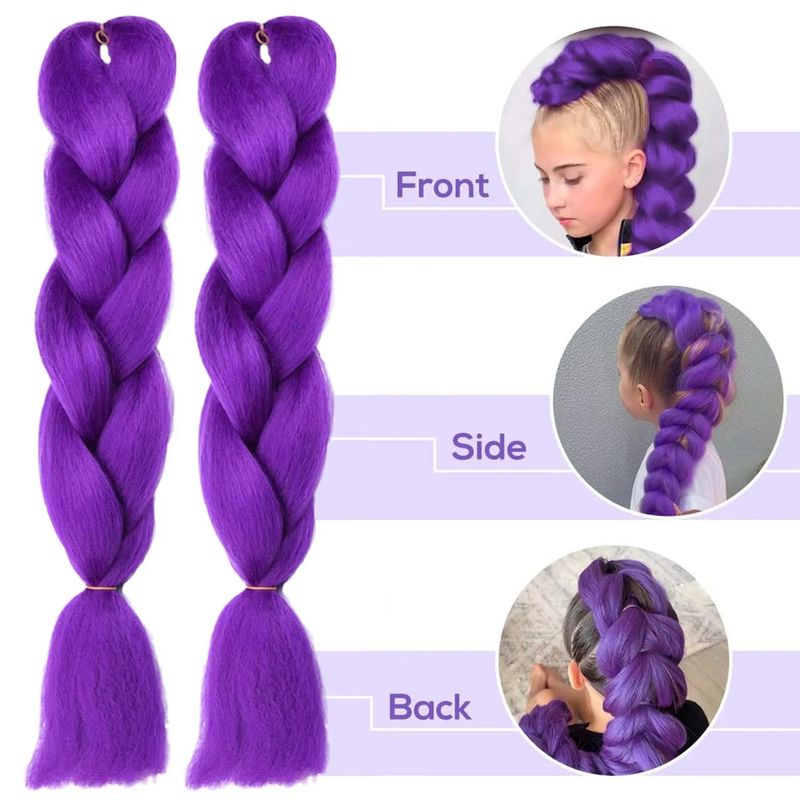 Long Purple 24Inch Jumbo Braid Extensions Cos Synthetic Braiding Hair Afro Ombre Color Kanekalon Hair for Children/Women Braid