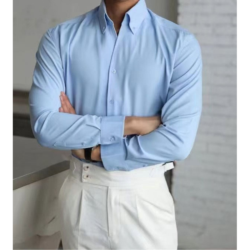 Long Sleeve Business Casual Large Pointed Collar Slim Fit Inner Wear Shirt Men Sky Blue XXL