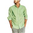 Long Sleeve Cotton Linen Shirt Men's Casual Polo Collar Green XL